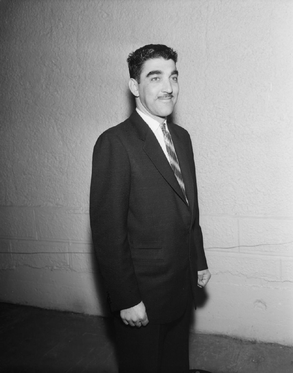 Annonceur de radio, 1950, Archives nationales à Montréal, Fonds Conrad Poirier, (06M,P48,S1,P23665), Poirier, Conrad.
