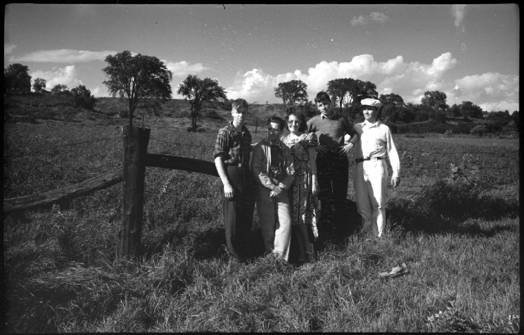 Nous voyons un groupe de jeunes gens en tenue estivale au milieu d'un champ