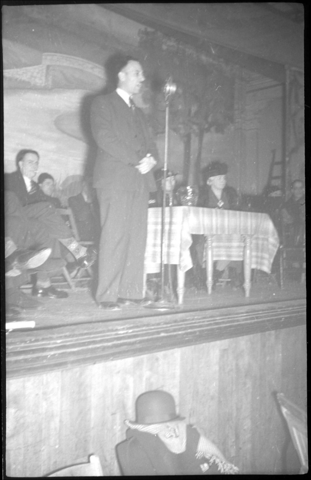 Nous voyons un politicien du nom de Charley Bousquet debout sur une estrade entouré de ses partisans, s'adressant à un auditoire lors d'élections dans Saint-Henri dans l'Ouest de Montréal