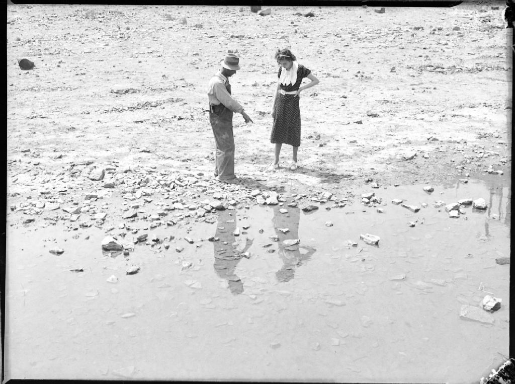 Un contremaître à la recherche d'un serpent en compagnie de madame Joan Ahern Blouin dans une carrière du Plateau Mont-Royal, la «Montreal Quarry Ltd» située au 6217 De Lanaudière à Montréal