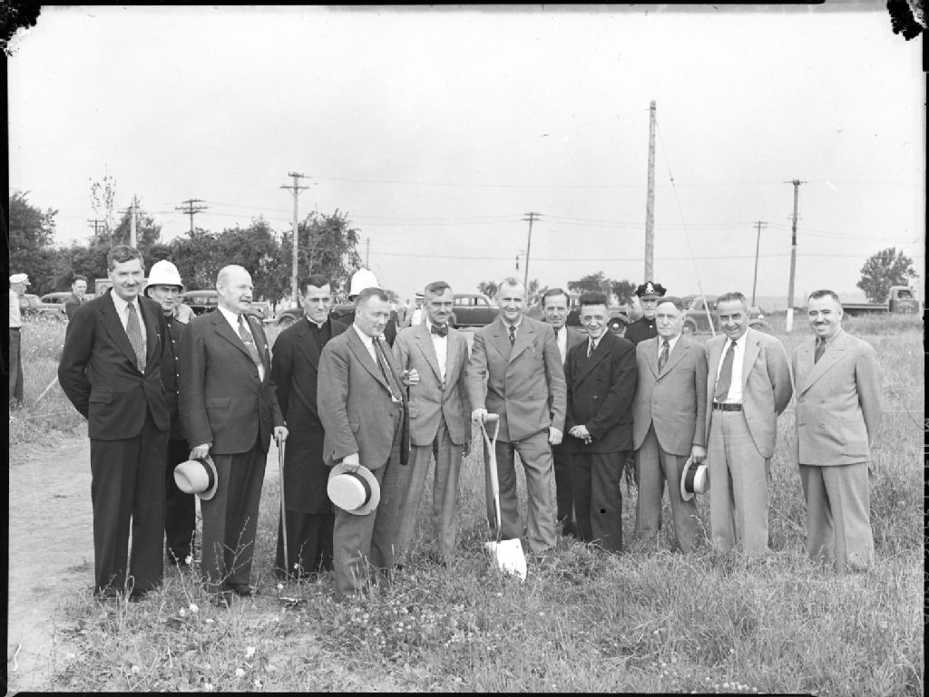 Le maire Ferland de Verdun pelle à la main sur le site d'une future piscine au milieu d'un groupe de personnalités et quelques policiers