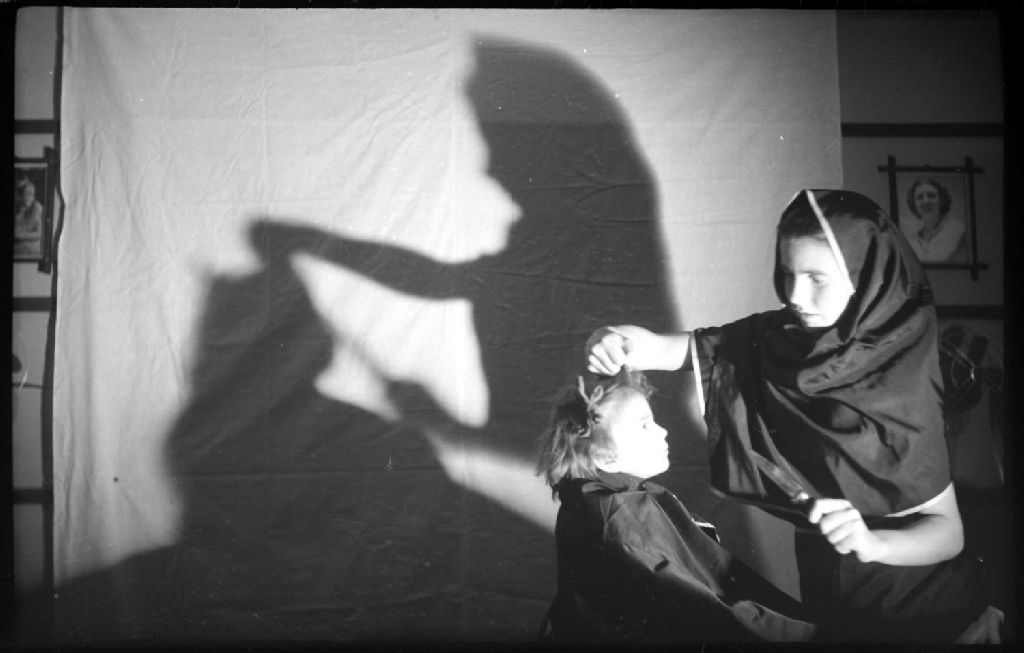 Nous voyons une jeune fille prénommée Eileen, coiffée d'un voile et tenant à la main un couteau pointé vers un garçon dont elle tient une mèche de cheveux. Nous apercevons l'ombre des deux protagonistes se détachant en silhouette sur une toile de fond