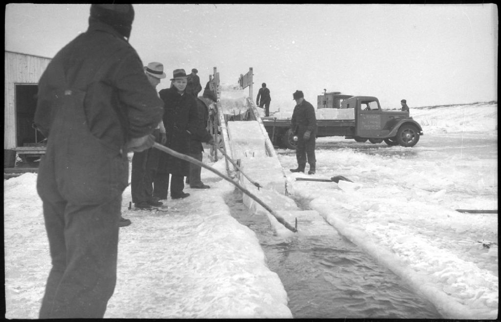 Snow Pictures. Ice Cutting, 8 février 1938, Archives nationales à Montréal, Fonds Conrad Poirier, (06M,P48,S1,P3160), Poirier, Conrad.