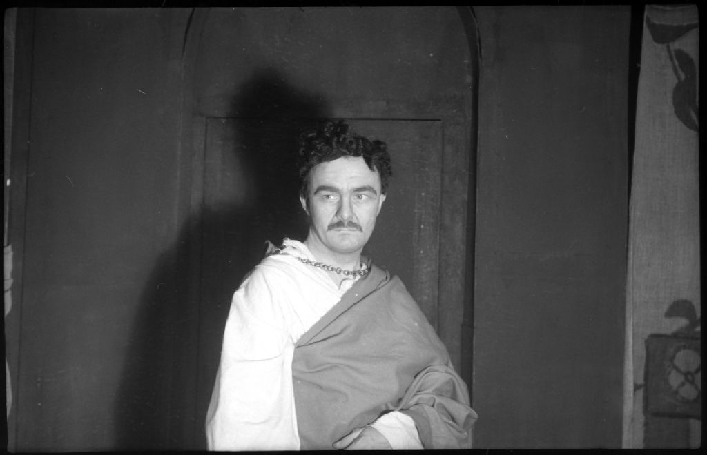 Nous voyons un comédien de la pièce «Othello» de Shakespeare présentée sur la scène du «Sir George-William College», 1441 rue Drummond dans l'ouest de Montréal. Nous l'apercevons vêtu d'une toge