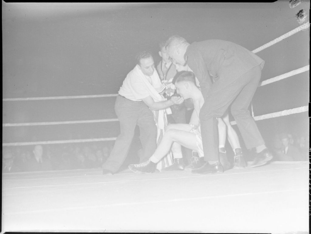 Boxing. Gagnon...Bechard Fight, 2 octobre 1939, Archives nationales à Montréal, Fonds Conrad Poirier, (06M,P48,S1,P3467), Poirier, Conrad.