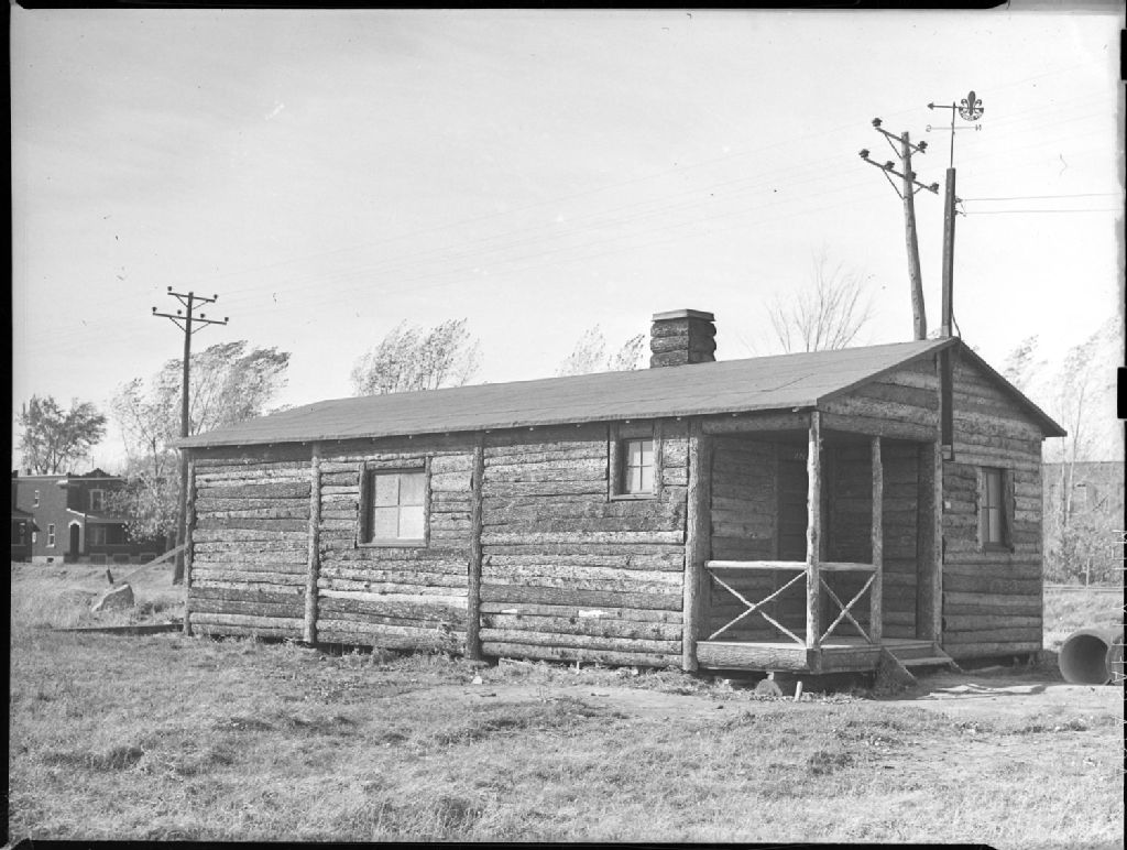 Nous voyons un camp de bois rond avec une galerie appartenant à une troupe de scouts de Longueuil. Sur le toit, nous apercevons une girouette en forme de fleur de lis et portant l'inscription : Boy Scouts
