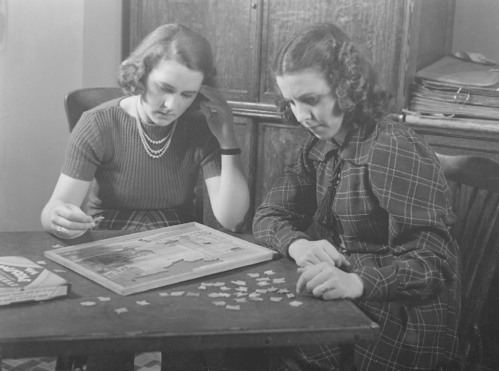Nous voyons deux jeunes filles du nom de Eileen Greenwood et Myrtle Bethune travaillant ensemble à recomposer un casse-tête