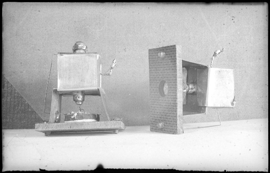 Nous voyons en gros plan des pièces aimantées servant à la facture d'un orgue électrique à tuyaux réalisé par un dénommé Rawling