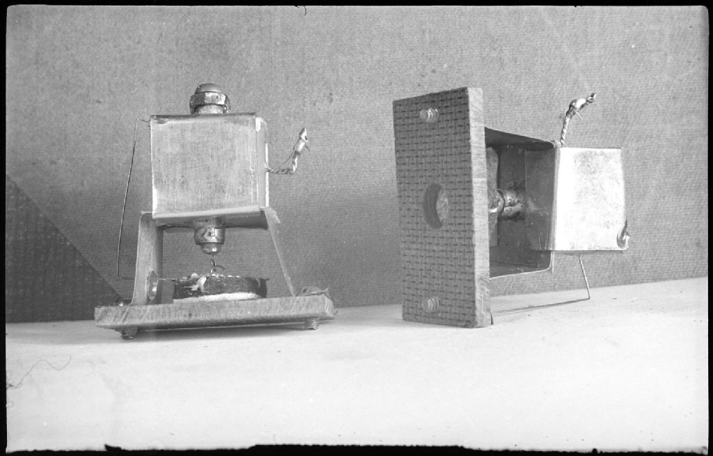 Nous voyons en gros plan des pièces aimantées servant à la facture d'un orgue électrique à tuyaux réalisé par un dénommé Rawling