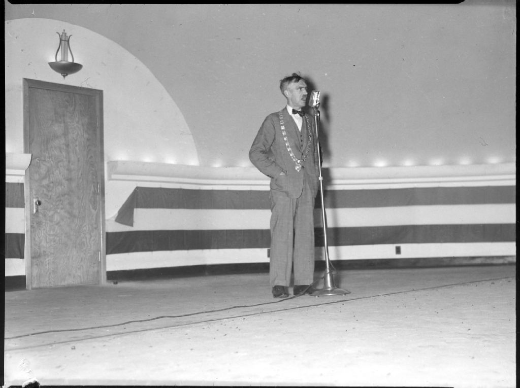 Nous voyons le maire de Verdun, Monsieur Wilson, prenant la parole à l'occasion d'un jamboree