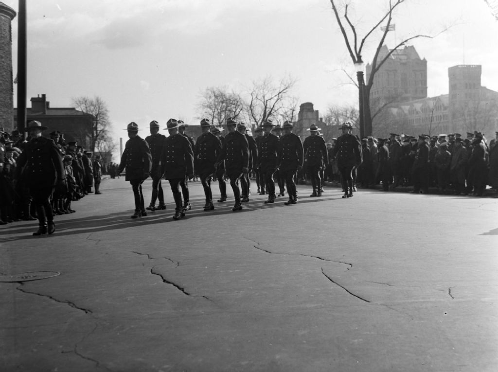 News. Mounties on Parade Armistice Day, 11 novembre 1939, Archives nationales à Montréal, Fonds Conrad Poirier, (06M,P48,S1,P4125), Poirier, Conrad.