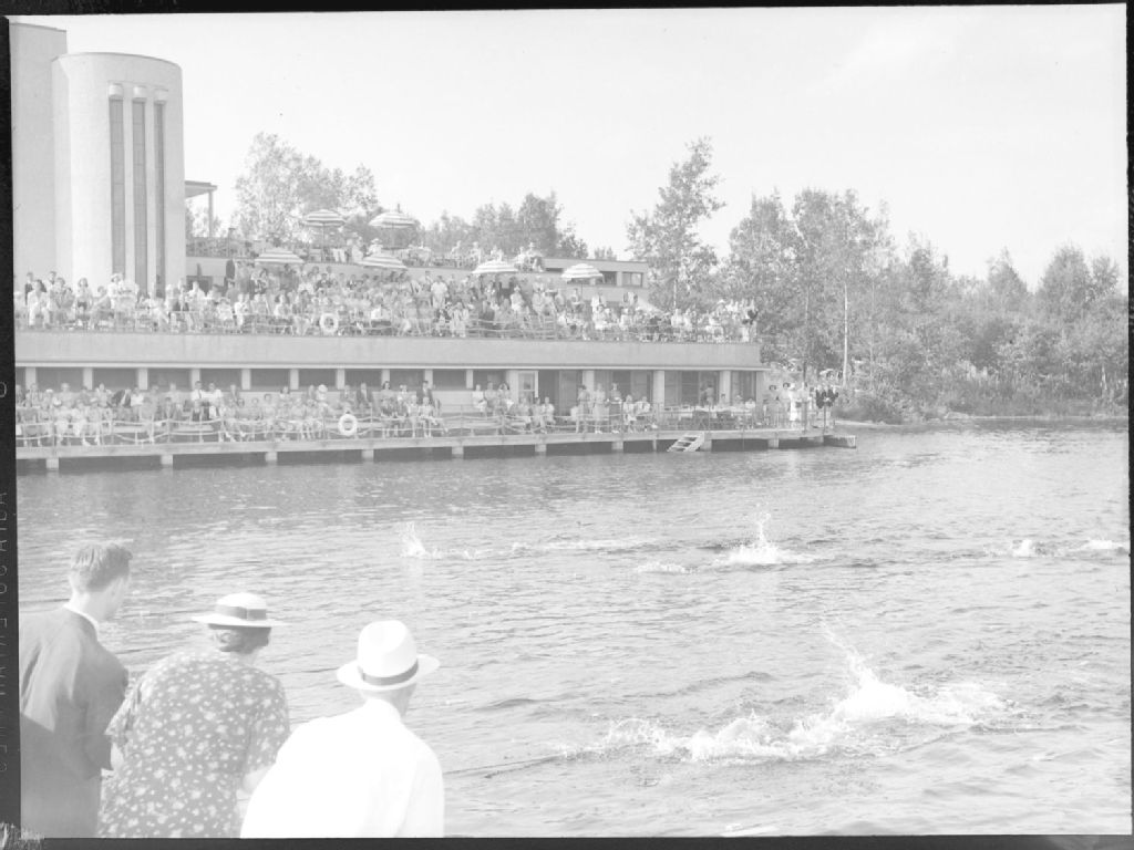 Swimming. At Domaine d'Estérel, 12 août 1939, Archives nationales à Montréal, Fonds Conrad Poirier, (06M,P48,S1,P4566), Poirier, Conrad.