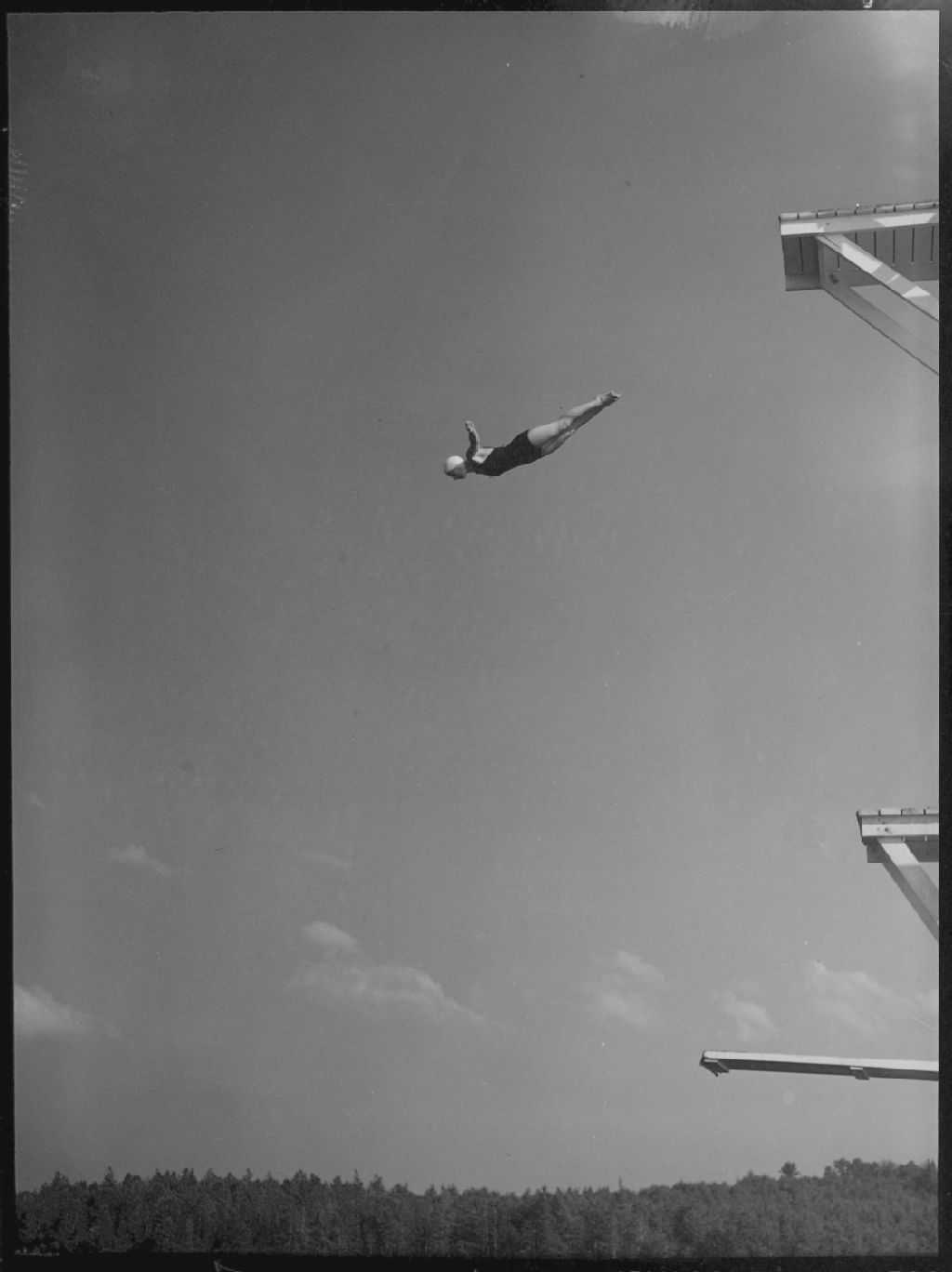 Swimming. At Domaine d'Estérel, 12 août 1939, Archives nationales à Montréal, Fonds Conrad Poirier, (06M,P48,S1,P4567), Poirier, Conrad.