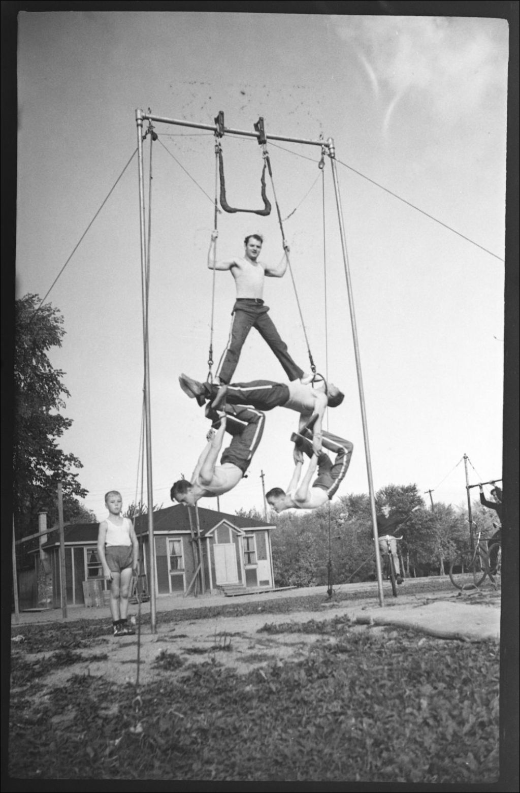 Trapèze. Em Orlick and Y.M.C.A. Boys, 30 septembre 1939, Archives nationales à Montréal, Fonds Conrad Poirier, (06M,P48,S1,P4617), Poirier, Conrad.