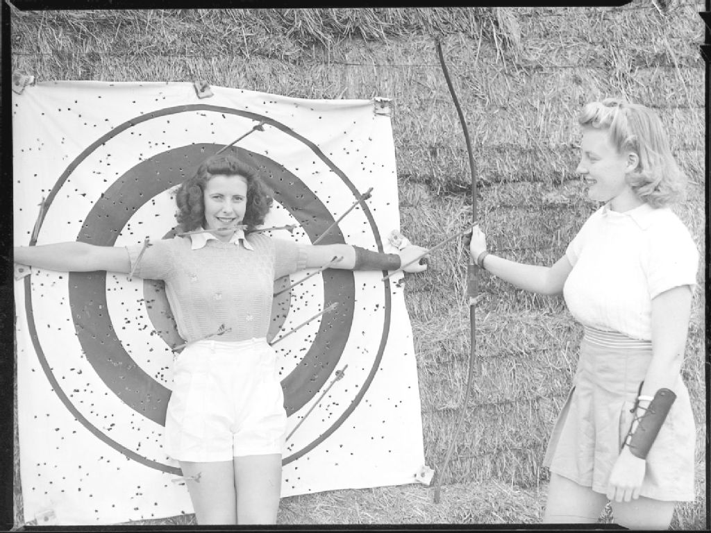 Archery. Eileen and Peggy, 12 septembre 1940, Archives nationales à Montréal, Fonds Conrad Poirier, (06M,P48,S1,P4681), Poirier, Conrad.