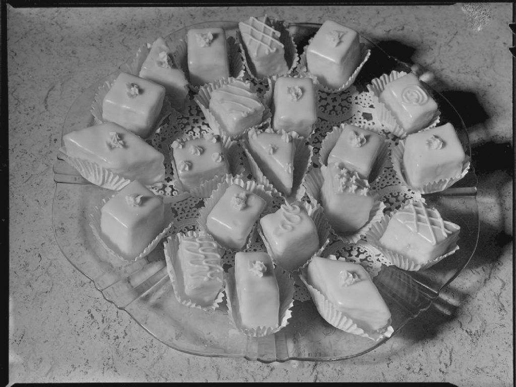 Nous voyons des petits gâteaux confectionnés aux Écoles ménagères provinciales, rue Sherbrooke Est à Montréal