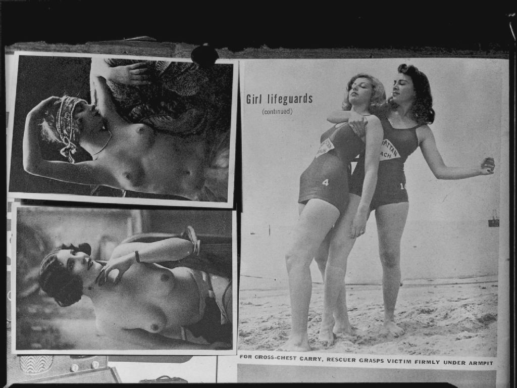 Nous voyons une photo de sauveteures de Manhattan Beach (États-Unis) publiée dans le magazine «Life». Deux photos de femmes nues sont à côté de celle du «Life»