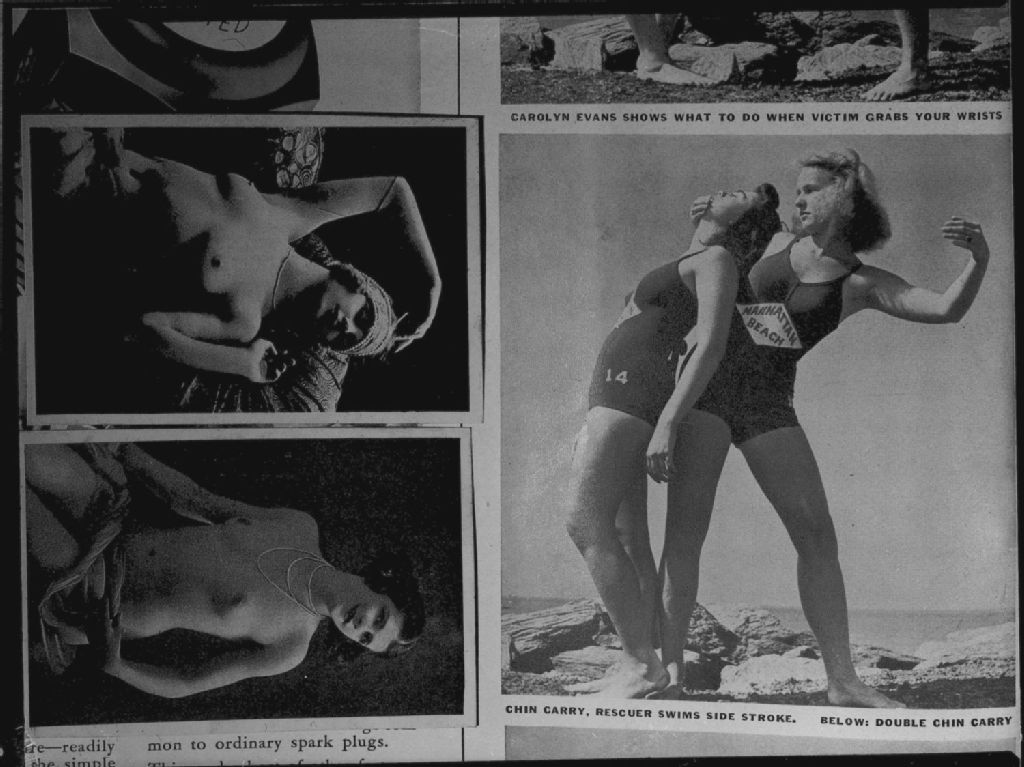Nous voyons une photo de sauveteures de Manhattan Beach (États-Unis) publiée dans le magazine «Life». Deux photos de femmes nues sont à côté de celle du «Life»