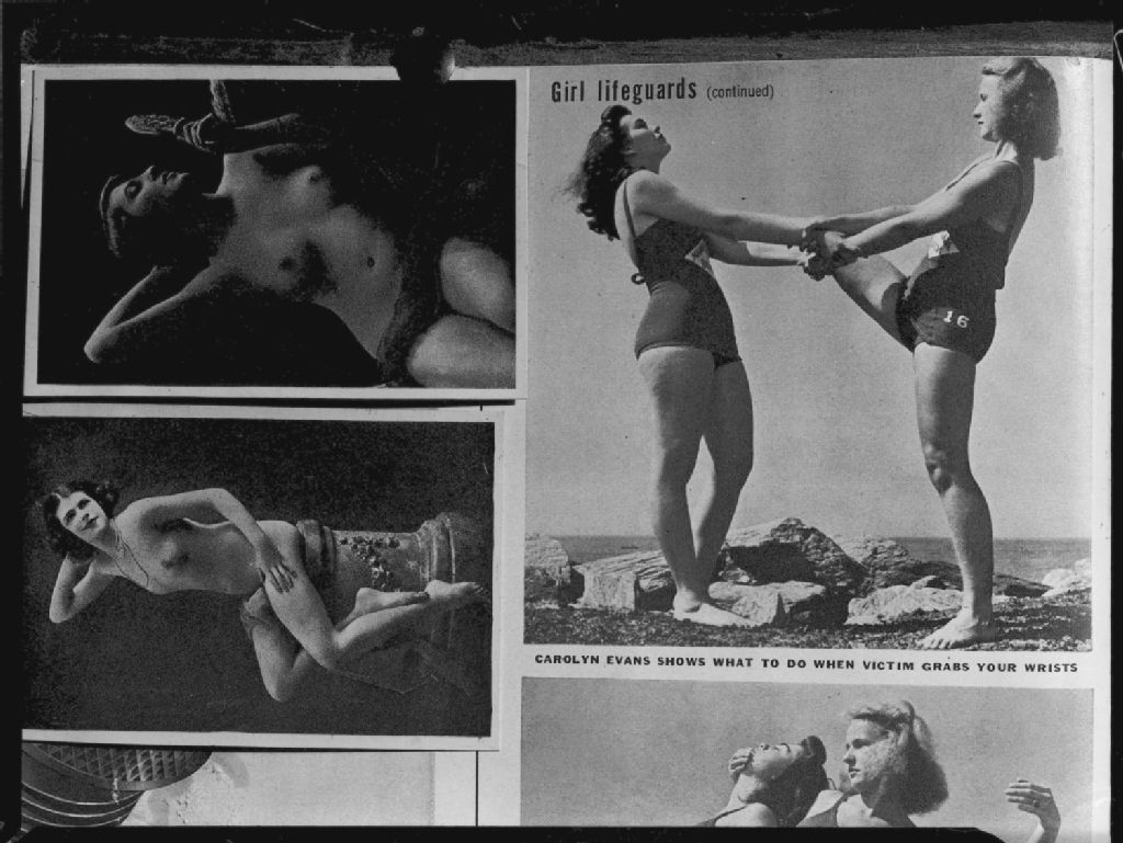 Nous voyons une photo de sauveteures de Manhattan Beach (États-Unis) publiée dans le magazine «Life». Deux photos de femmes nues sont à côté de celle du «Life»