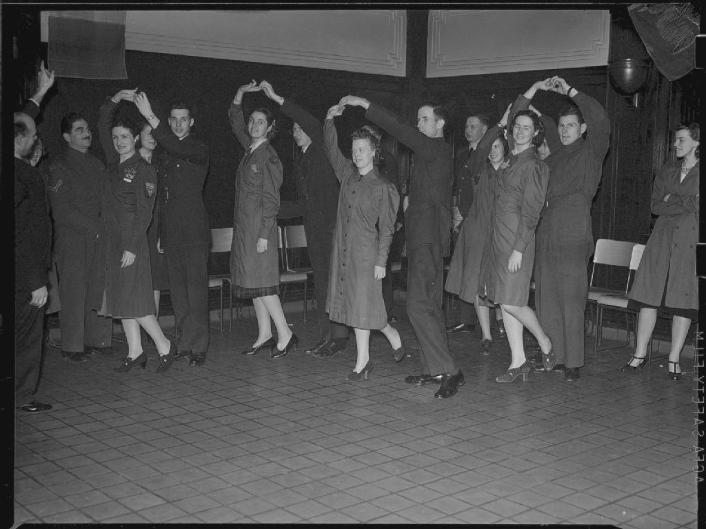 Dance. Soldiers learn to dance, 26 avril 1940, Archives nationales à Montréal, Fonds Conrad Poirier, (06M,P48,S1,P5076), Poirier, Conrad.