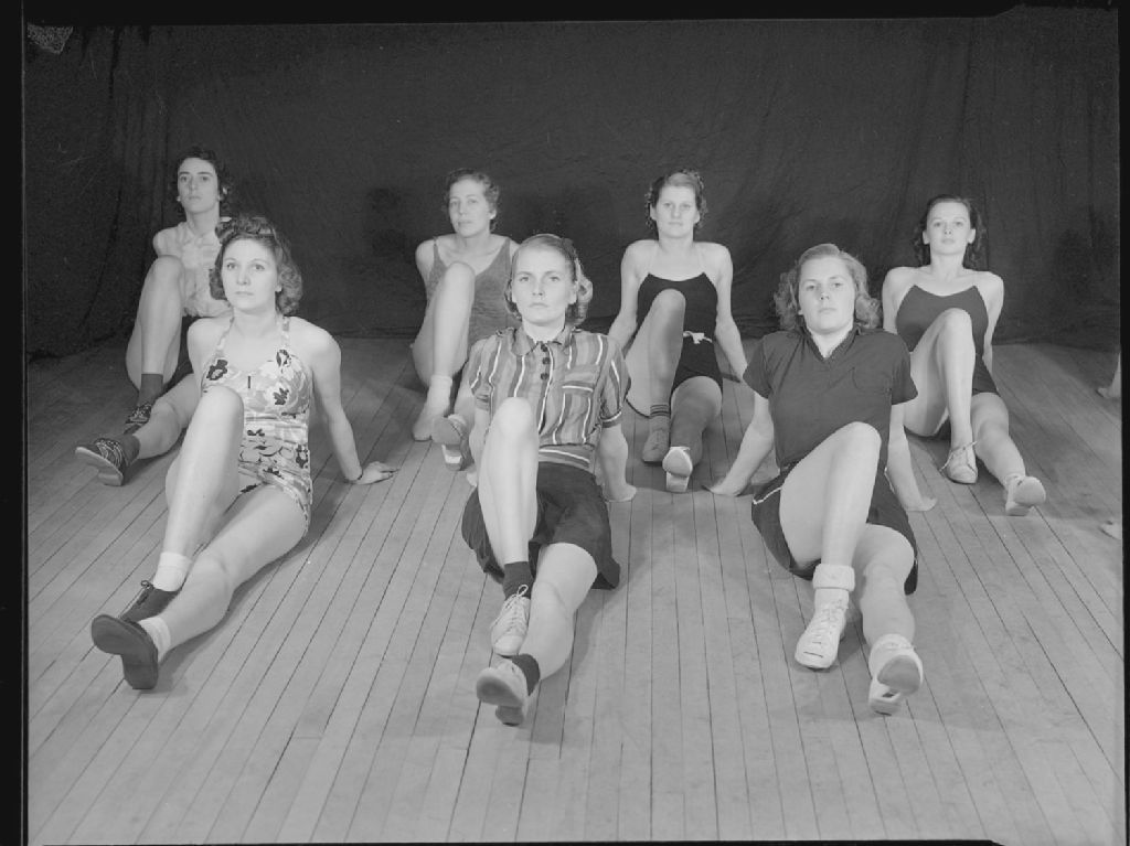 Des jeunes femmes font des exercices au sol à la «Ritz Mannequin School»