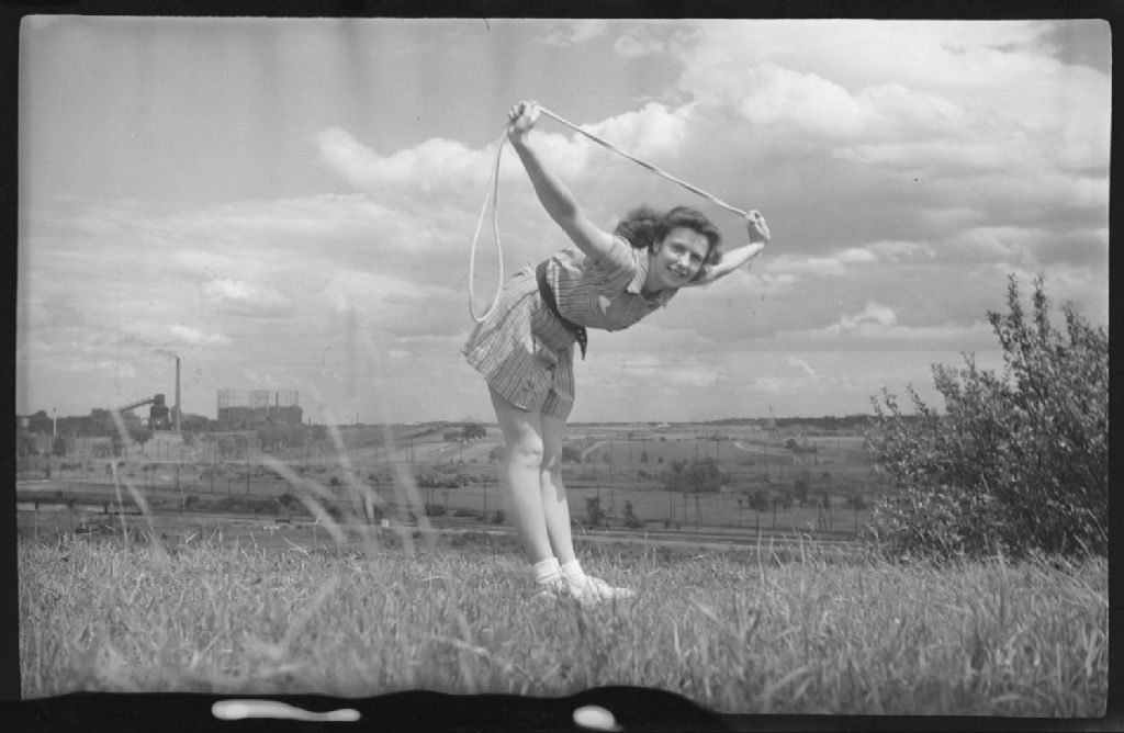 Une jeune fille, Eileen Greenwood, s'amuse avec une corde à danser