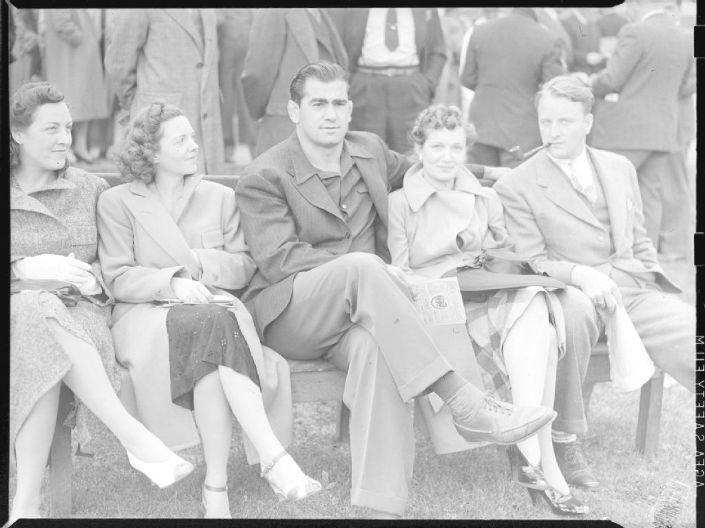 Group. Mrs. L. Theoz, Mrs. E. Quinn, Lou Thesz, Mrs. A. Marienfeld, Mr. A. H. Marienfeld, 24 août 1940, Archives nationales à Montréal, Fonds Conrad Poirier, (06M,P48,S1,P5399), Poirier, Conrad.