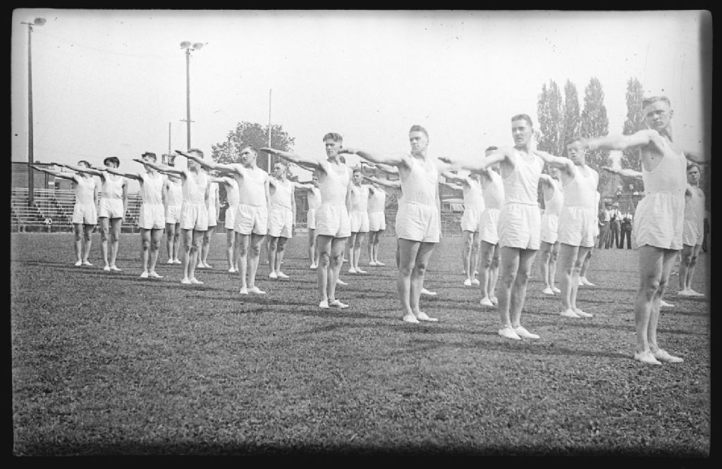 Physical Culture. Police Cadets, 24 juillet 1940, Archives nationales à Montréal, Fonds Conrad Poirier, (06M,P48,S1,P5645), Poirier, Conrad.