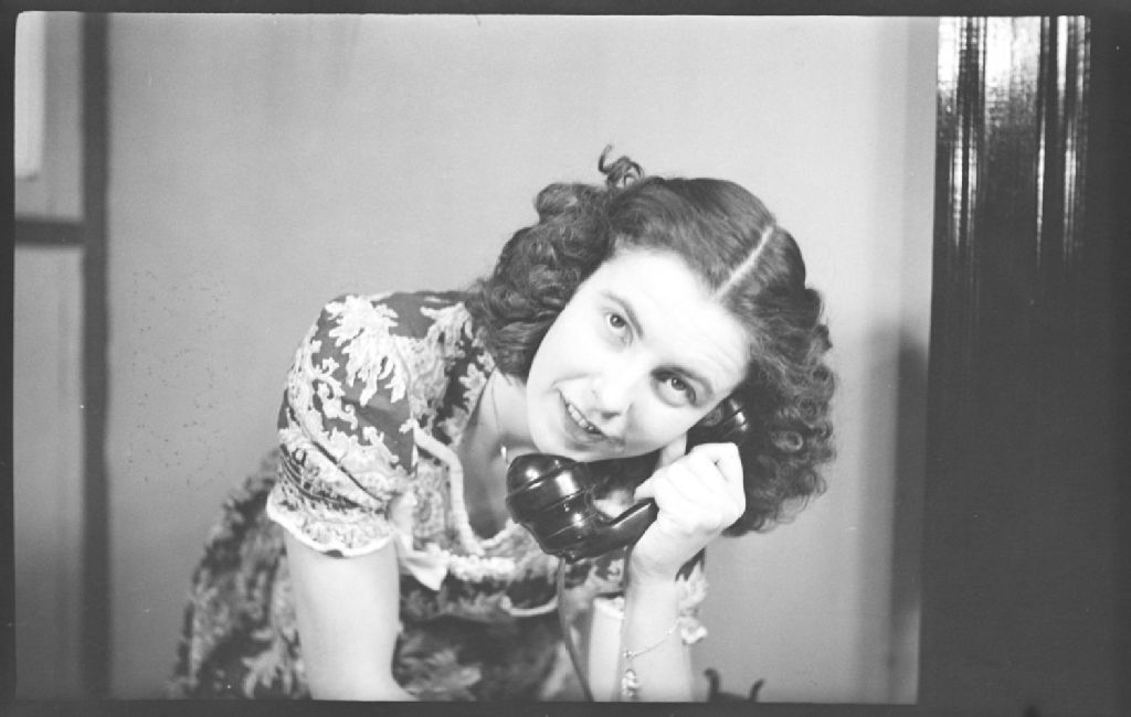 Eileen Greenwood tient le combiné d'un appareil téléphonique