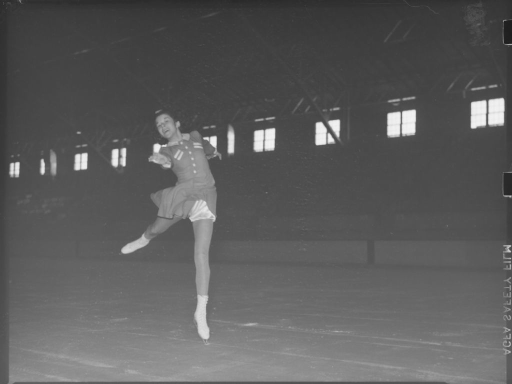 Skating. Suzanne Thouin, 5 mars 1940, Archives nationales à Montréal, Fonds Conrad Poirier, (06M,P48,S1,P5742), Poirier, Conrad.