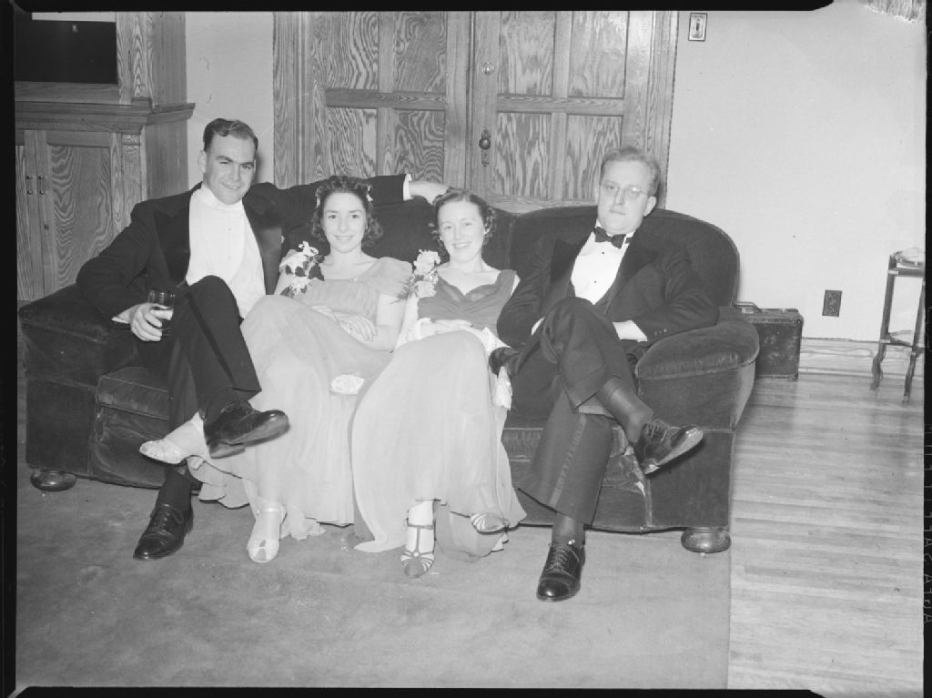 Harold Brown et Zillah Cluse ainsi que Dorothy Roche et Jerry Weir sont assis sur un canapé au bal de la cavalerie