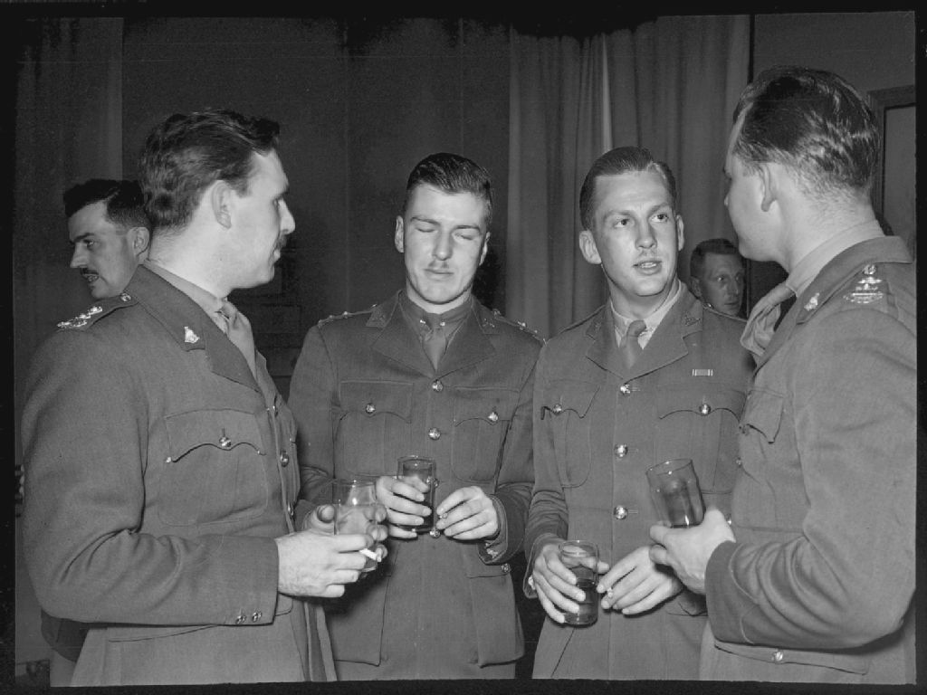 Nous voyons quatre officiers du régiment des «17th Duke of York's Royal Canadian Hussars». Il s'agit des lieutenants C.V.W. Vickers, E. Fuger R.C.D., P. Black R.C.D. et T.W. Duncan