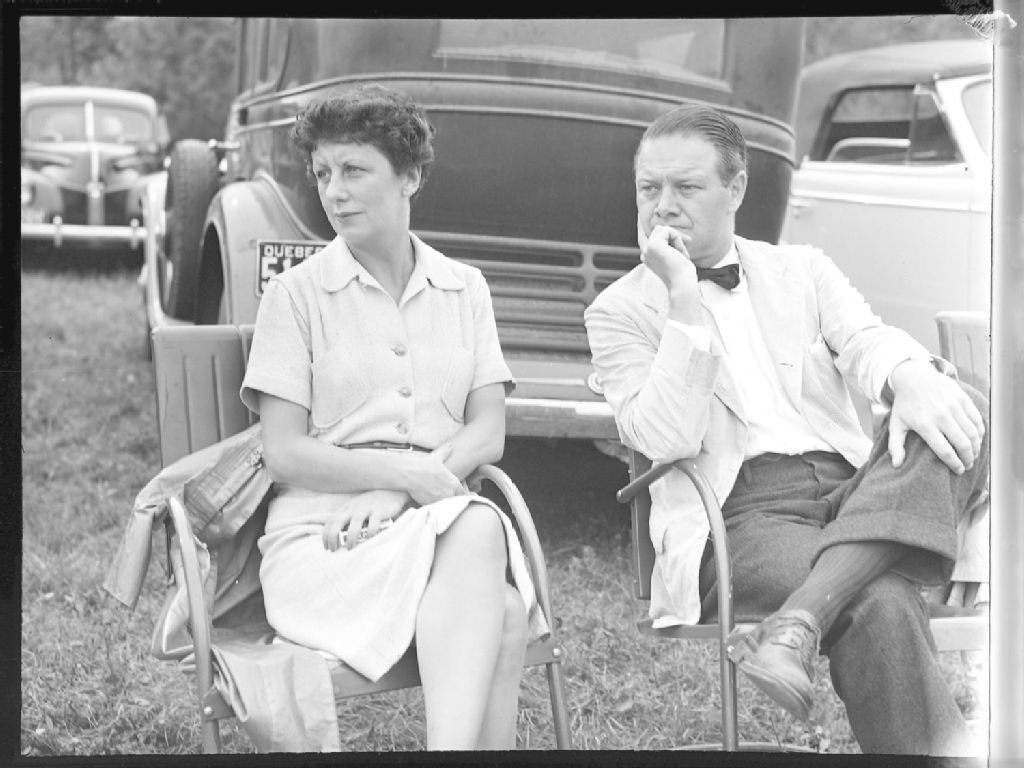 Monsieur et madame A.W. Schmid assistent aux compétitions équestres de l'hôtel «Alpine Inn» de Sainte-Marguerite-du-Lac-Masson dans les Laurentides