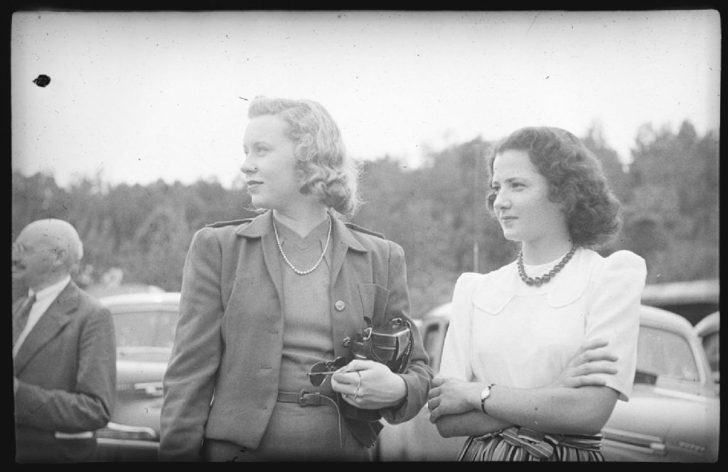Mesdames L. Cameron et Helen Findlay assistent aux compétitions équestres de l'hôtel «Alpine Inn» de Sainte-Marguerite-du-Lac-Masson dans les Laurentides