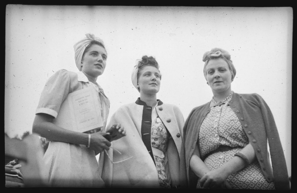 Jacqueline et Mimi Fogt et madame Charles Fletcher assistent aux compétitions équestres de l'hôtel «Alpine Inn» de Sainte-Marguerite-du-Lac-Masson dans les Laurentides