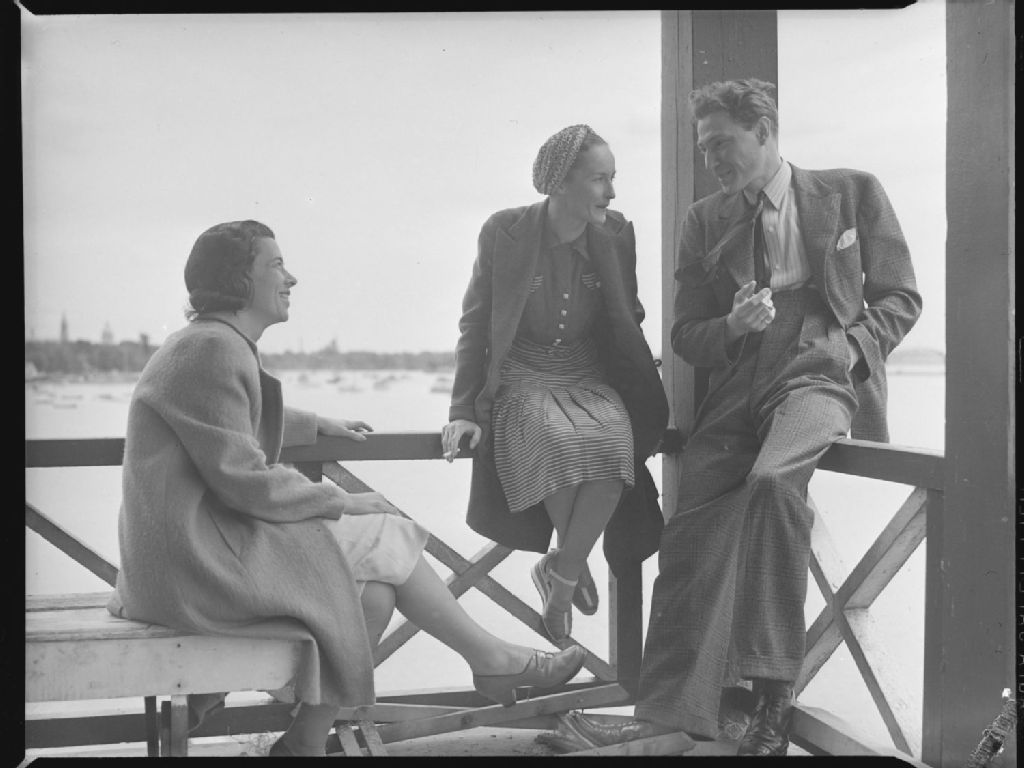 Adelaide Smith, Doreen Lewis et Douglas Peterson sont assis sur la terrasse du théâtre d'été de Lachine