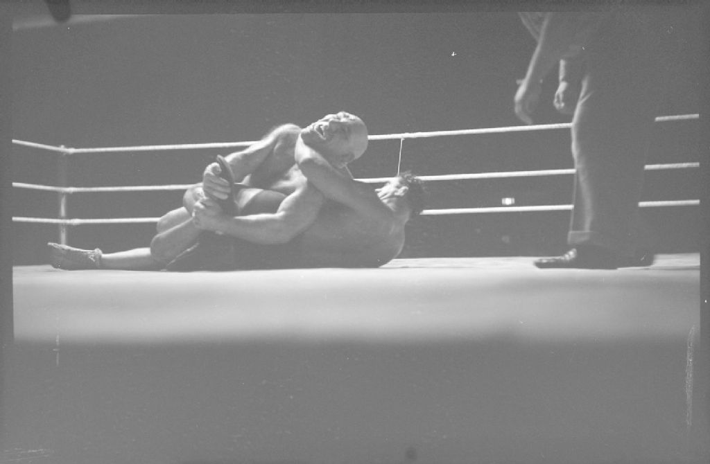 Wrestling. The Angel...Lou Thesz, 14 août 1940, Archives nationales à Montréal, Fonds Conrad Poirier, (06M,P48,S1,P6191), Poirier, Conrad.