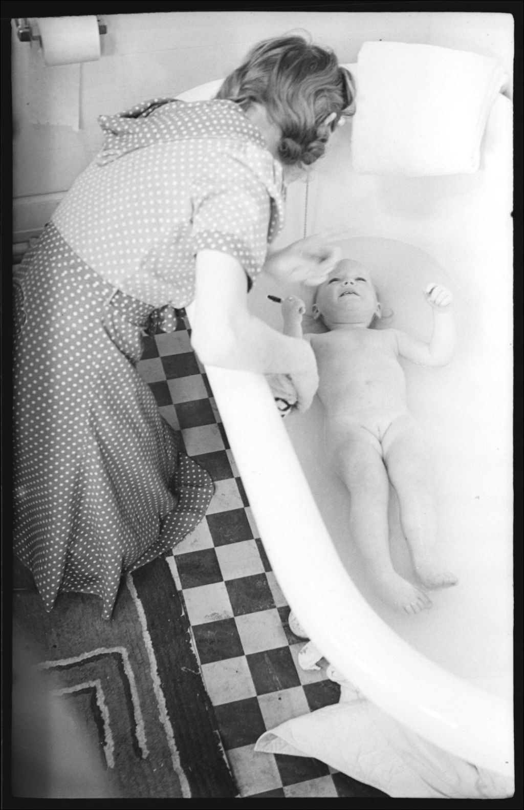 La petite Deanna Luck prend son bain. Sa mère est près de la baignoire