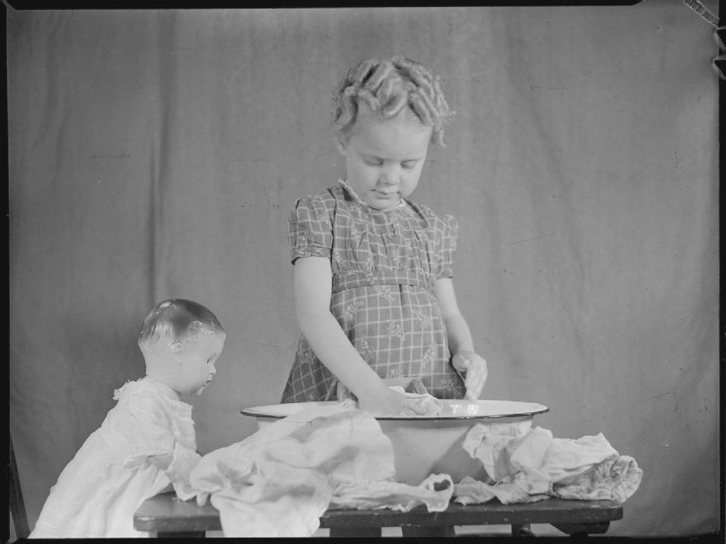 Children Activities. Little Mother Audrey Walker, 23 avril 1941, Archives nationales à Montréal, Fonds Conrad Poirier, (06M,P48,S1,P6370), Poirier, Conrad.