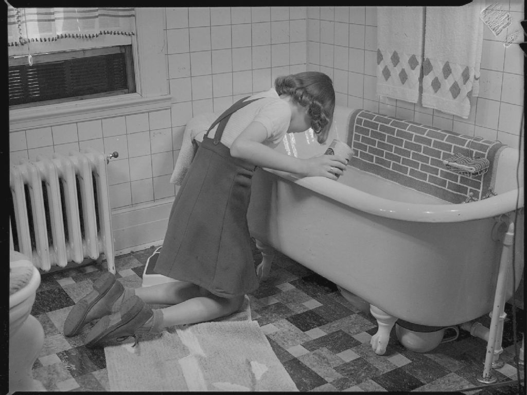 Children Activities. Home tasks for Children. Pauline Luck, 15 mai 1941, Archives nationales à Montréal, Fonds Conrad Poirier, (06M,P48,S1,P6375), Poirier, Conrad.
