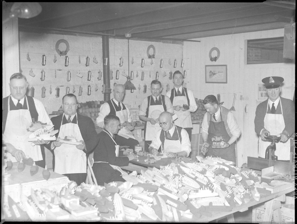 Christmas. Police chiefs repair toys, 20 novembre 1941, Archives nationales à Montréal, Fonds Conrad Poirier, (06M,P48,S1,P6505), Poirier, Conrad.