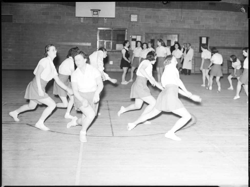 College. McGill Coeds War Training Gymnastics, 17 mars 1941, Archives nationales à Montréal, Fonds Conrad Poirier, (06M,P48,S1,P6533), Poirier, Conrad.