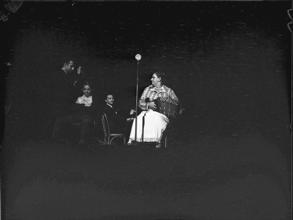 Madame Lapierre, à l'accordéon, et son fils joueur d'os irlandais accompagnent Armand Lapierre à une soirée d'amateurs présentée au «Mayfair Theatre Moving Pictures» situé au 86, rue Sainte-Catherine Ouest à Montréal. Billy Munro est au piano