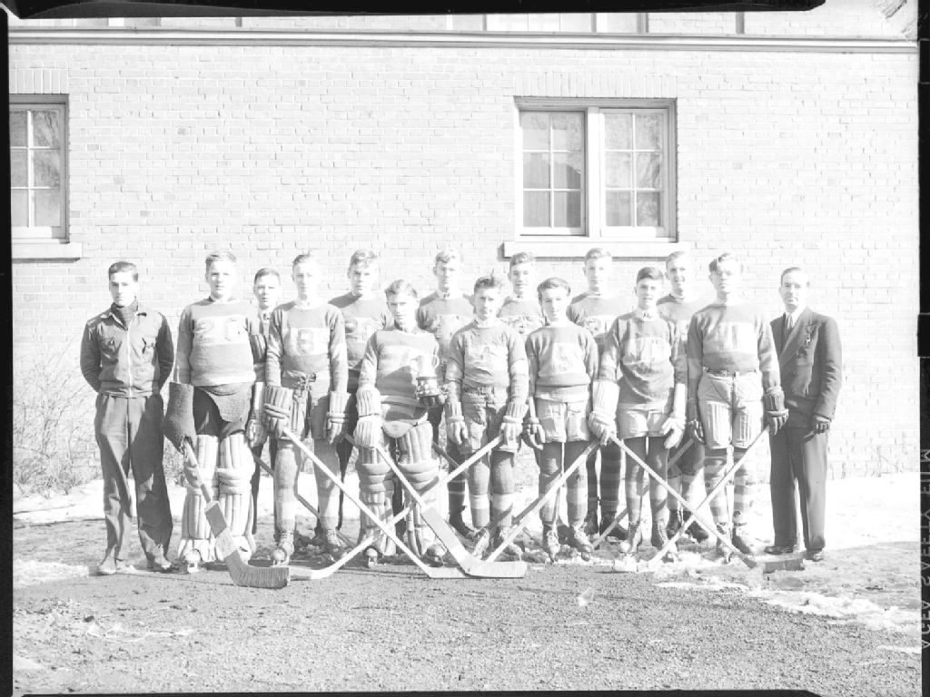Group. Montreal West High School Hockey Team Juniors, 28 mars 1941, Archives nationales à Montréal, Fonds Conrad Poirier, (06M,P48,S1,P6942), Poirier, Conrad.