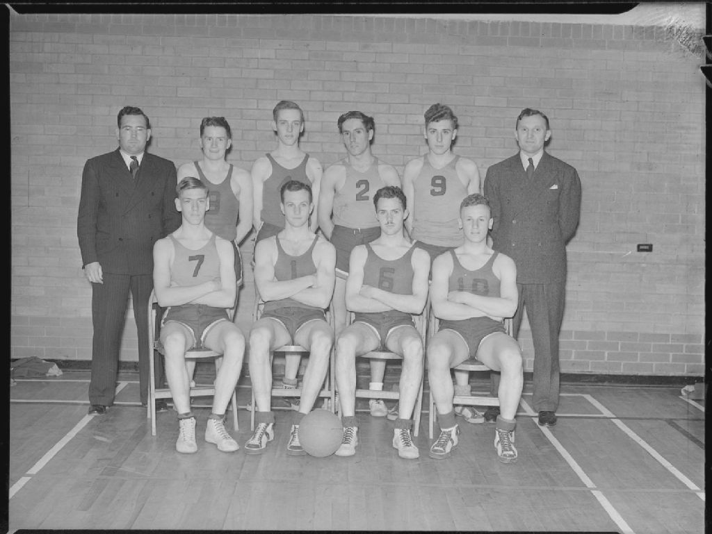 Nous voyons les joueurs d'une équipe de basket-ball de la Young Men's Christian Association «Southwestern Y.M.C.A.» située au 1000, avenue Gordon à Verdun
