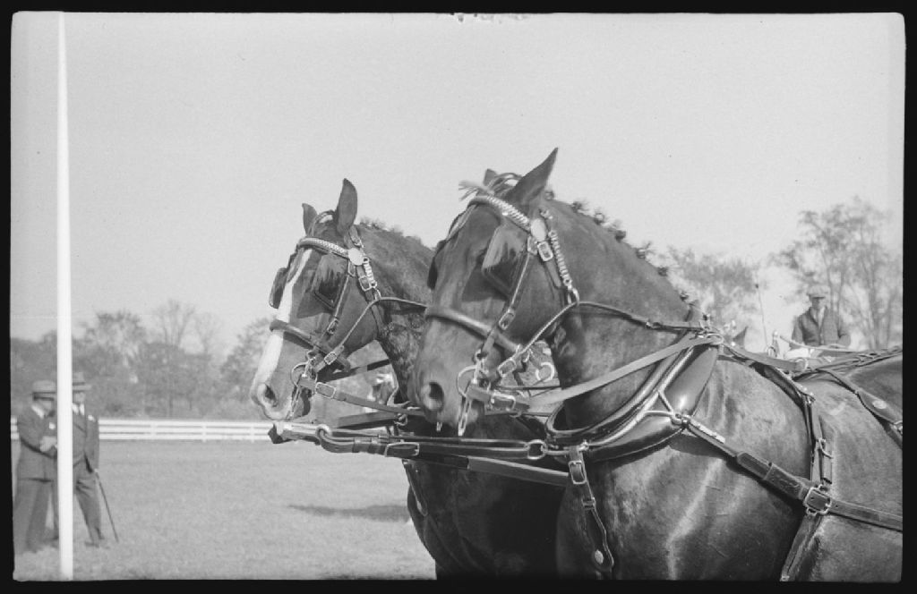 Horse. Red Top Horse Show. Black Pair. 1st James Strachan, 24 septembre 1941, Archives nationales à Montréal, Fonds Conrad Poirier, (06M,P48,S1,P6988), Poirier, Conrad.