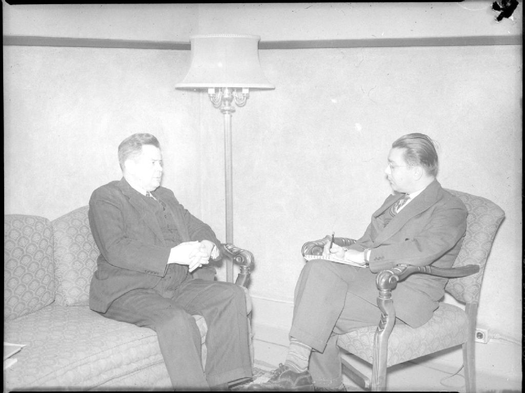 Music. Mr. Danis of La Revue Populaire. Sir Ernest MacMillan of Toronto Conservatory of Music, 14 août 1941, Archives nationales à Montréal, Fonds Conrad Poirier, (06M,P48,S1,P7016), Poirier, Conrad.