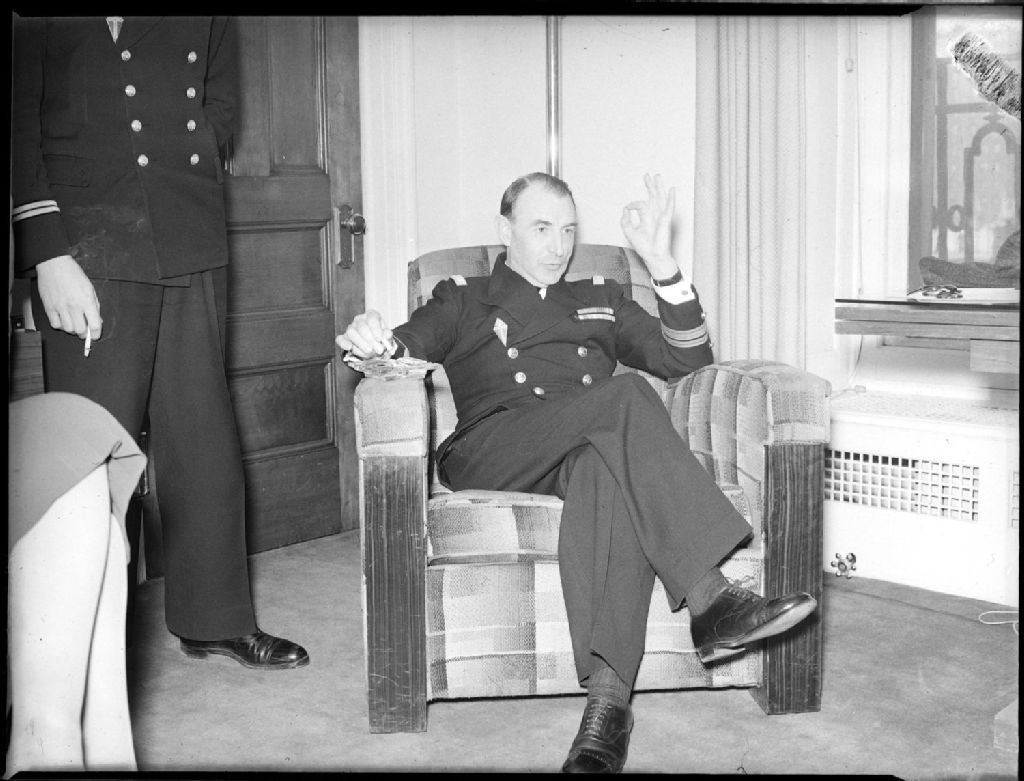 News. Commandant Thierry d'Argenlieu (représentant du général Charles de Gaulle), 22 mars 1941, Archives nationales à Montréal, Fonds Conrad Poirier, (06M,P48,S1,P7044), Poirier, Conrad.