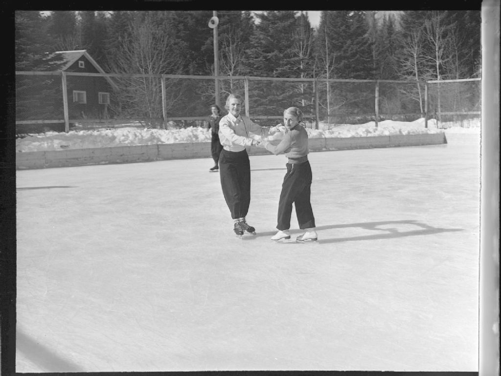 Skating. Mrs. Robert Fraser: Mrs. George Downey, 2 mars 1941, Archives nationales à Montréal, Fonds Conrad Poirier, (06M,P48,S1,P7184), Poirier, Conrad.