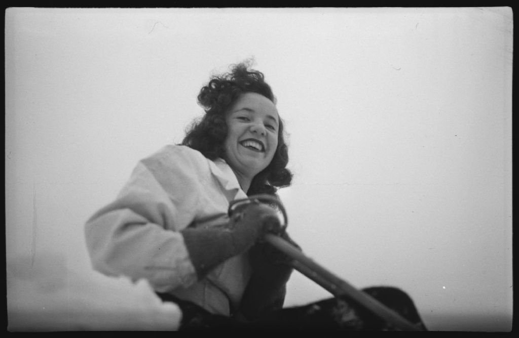 Skiing. Violet Lambert, 18 janvier 1941, Archives nationales à Montréal, Fonds Conrad Poirier, (06M,P48,S1,P7204), Poirier, Conrad.